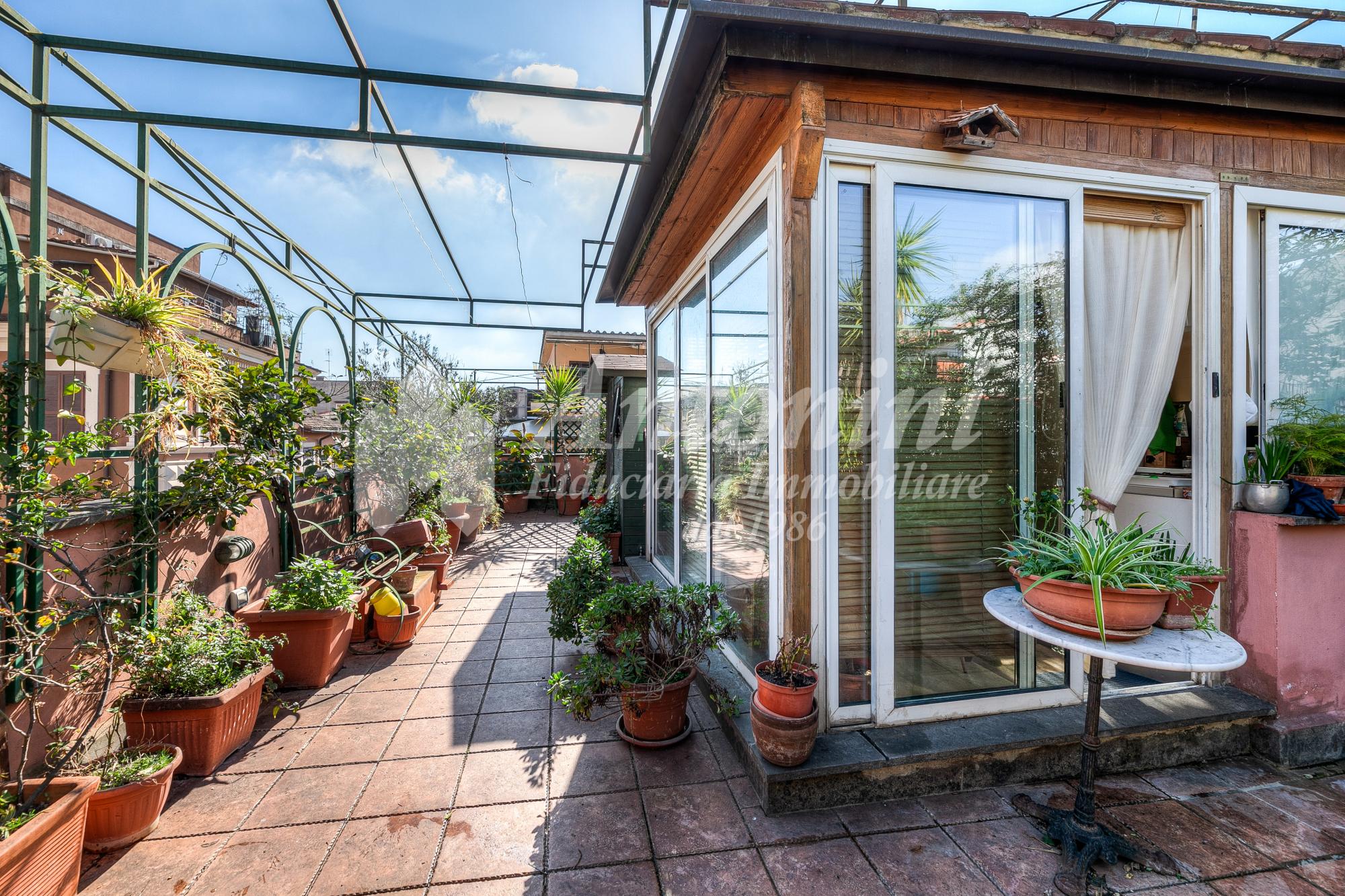 Via del Boschetto, Rione Monti, uno dei quartieri più ricercati ed affascinanti del Centro Storico di Roma, a pochi passi dal Colosseo e dai Fori Imperiali, splendido attico con terrazza panoramica sovrastante con vista sui tetti della Città. L'immobile è posto al terzo e quarto piano di una caratteristica palazzina del 1700 in ottimo stato, senza ascensore ma con la possibilità di realizzarlo. Internamente è stato ristrutturato e rifinito con materiali di prima scelta e pavimenti in legno di quercia pregiata, misura una superficie di circa 72 mq oltre alla terrazza di 60 mq ed è composto: al terzo piano di un soggiorno luminosissimo con tre finestre e zona pranzo, una piccola cucina in muratura, una camera matrimoniale con soffitti a travi in legno, armadi a muro e bagno interno; una comoda scala interna permette l'accesso alla bellissima terrazza tramite una veranda adibita ora a cucina con piccola zona pranzo ma che può facilmente essere trasformata in altra camera. Il riscaldamento è autonomo ed il condominio è di circa 110 euro mensili. Le caratteristiche dell'immobile e la sua ubicazione, lo rendono unico nel suo genere ed offrono una rara opportunità per chi desidera una tranquilla dimora nel centro della Capitale con tutti i servizi e mezzi di trasporto a disposizione.